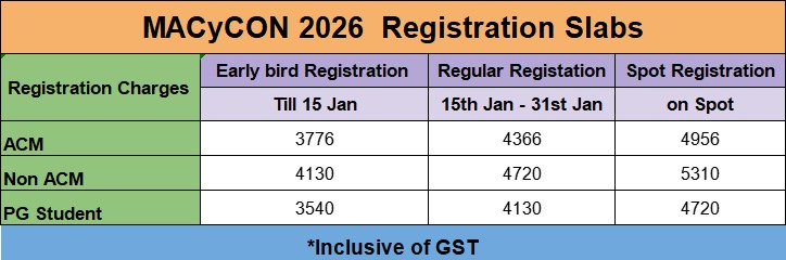Categories: Residents/Post PG 2 Years/ Other separate prizes for each category certificate of presentation for all participants Abstract should be sent to following email macycon2026@gmail.com